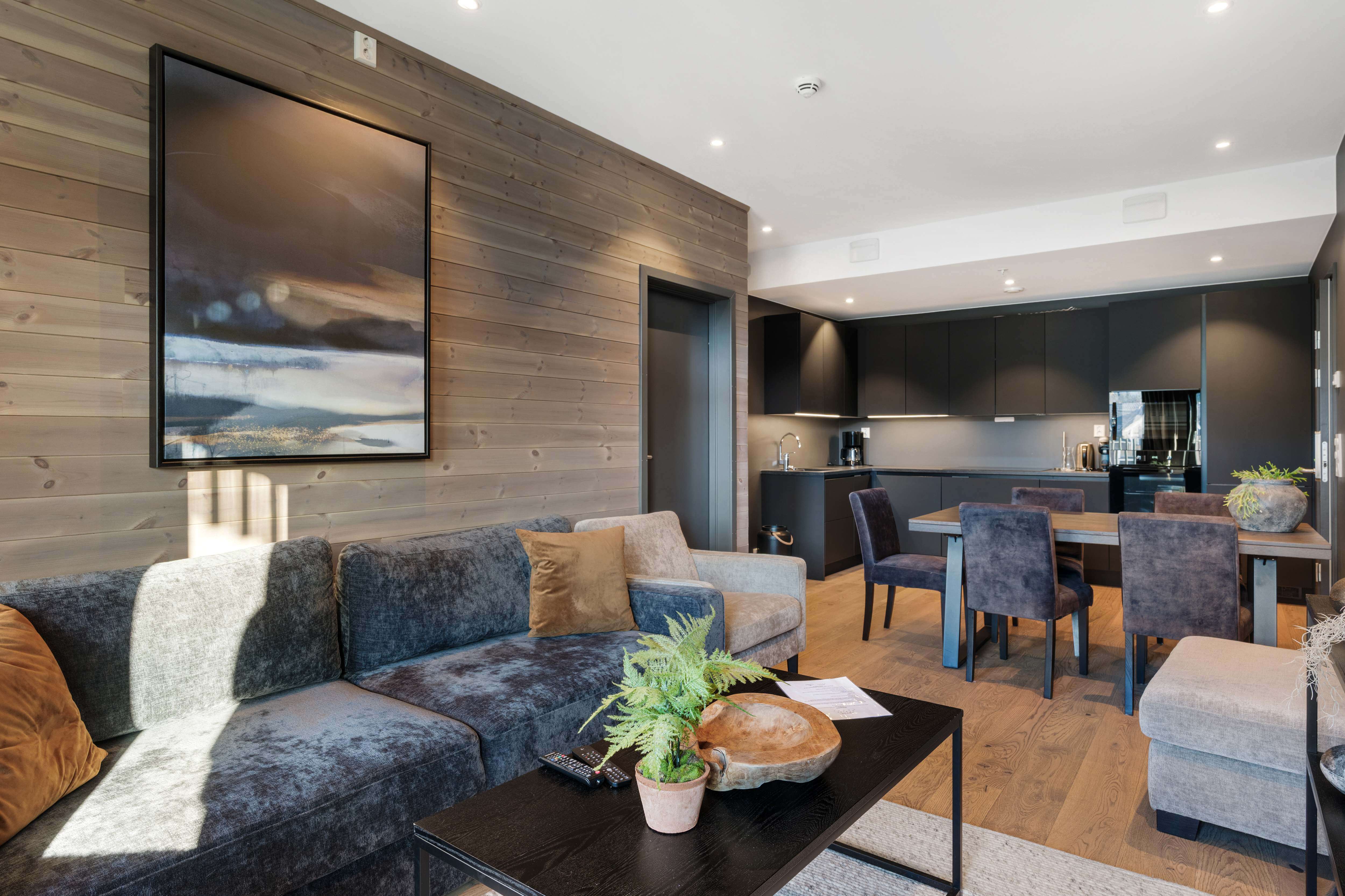 Smart hytteleilighet med stor åpen stue og kjøkken